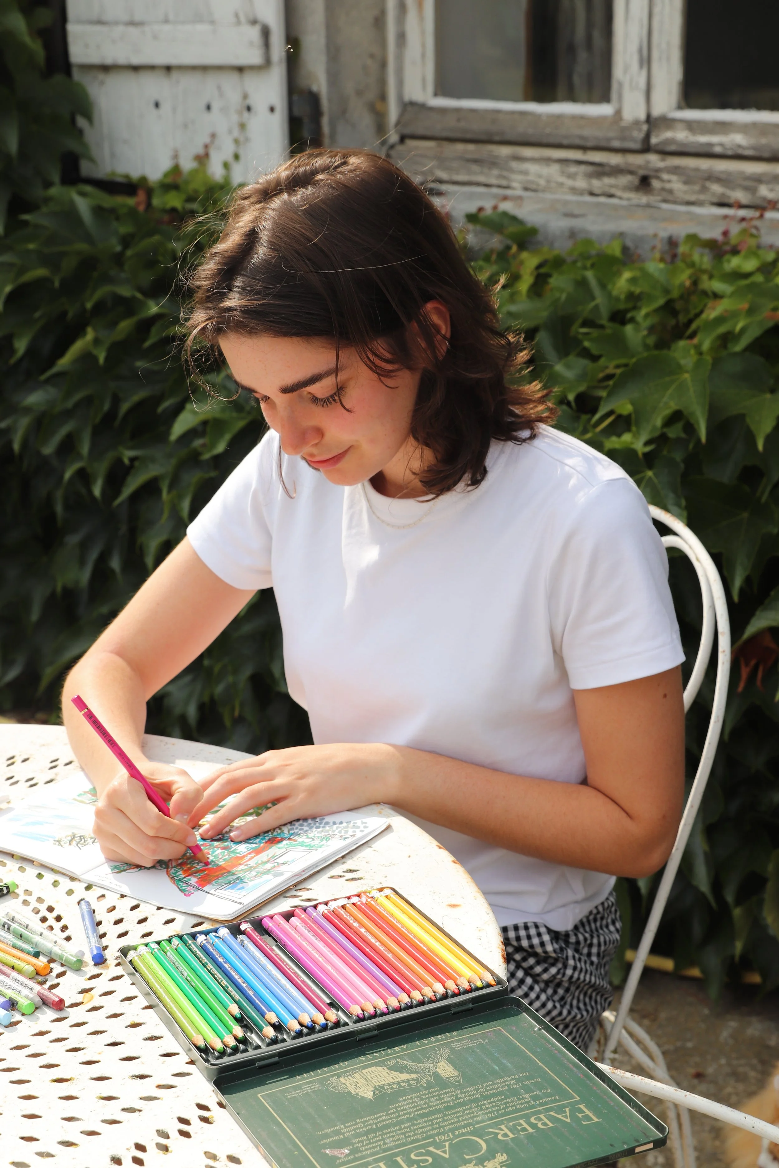 C’est grâce aux crayons de couleur et aux pastels, que je traduis ces instants simples et colorés du quotidien.